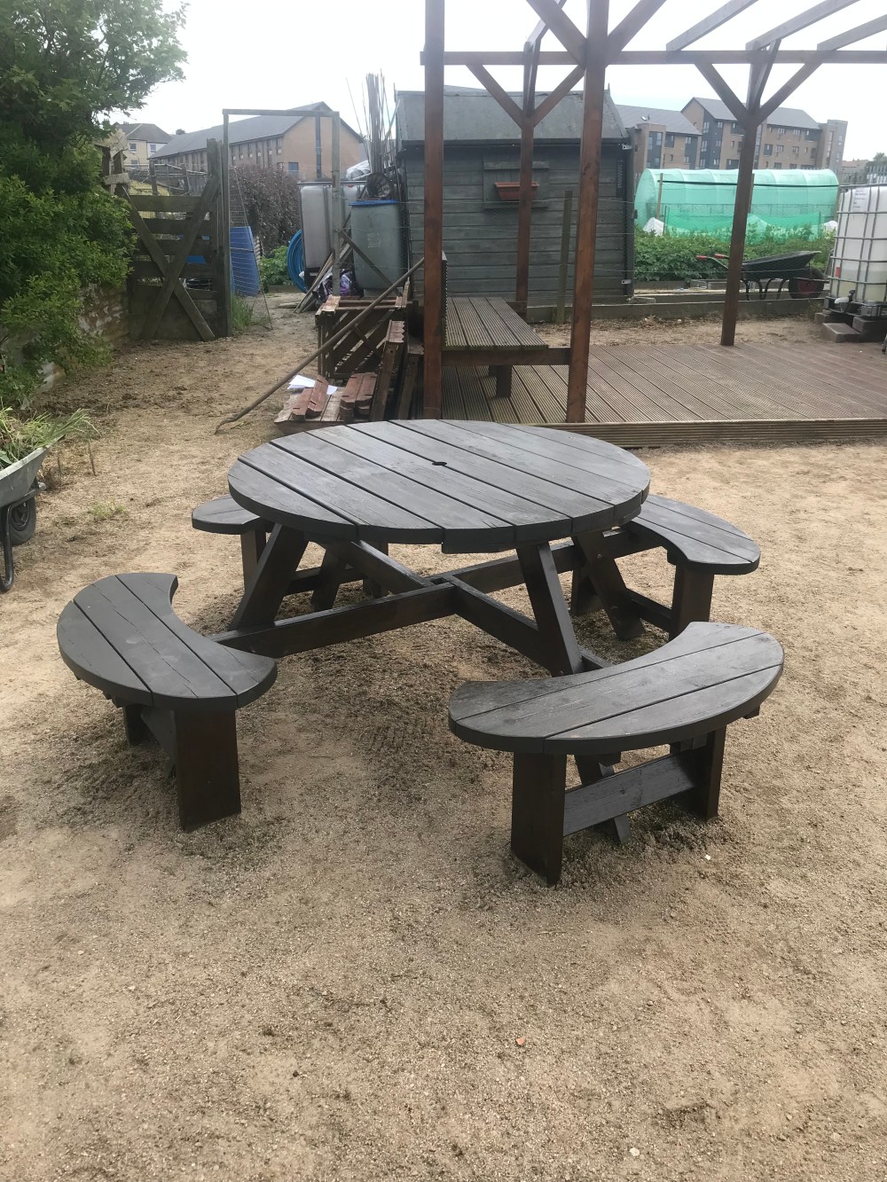 The pergola area looking good, tables painted and the orchard has had a makeover and trees fed. The wildlife area has been getting some overgrowth thinned out and our top soil store is covered up and weed free!